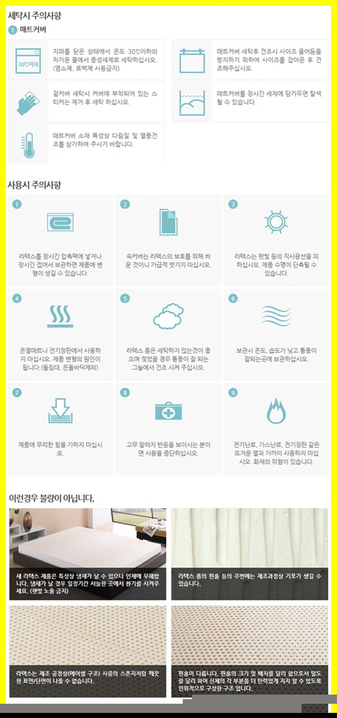 라텍스매트리스를 관리라고 하기까지는 그렇지만 몇 가지 주의 사항은 지켜주셔야 하는데요