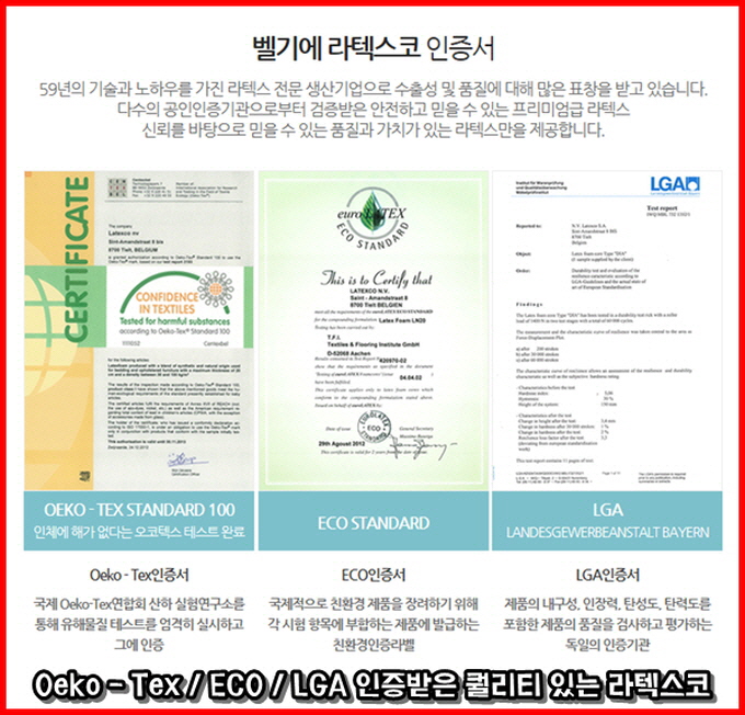 각 분야별로 테스트를 거쳐,, 시험에 통과한 라텍스코 라텍스매트리스,,