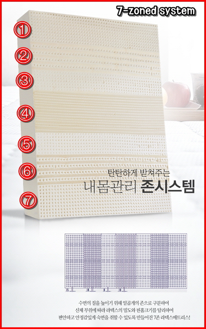 그래서 7존 ,, 누웠을 때 굴곡 그대로를 받쳐주는,, 편안함이 있는 라텍스매트리스,,