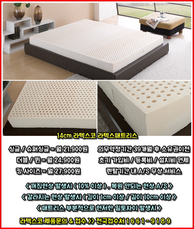라텍스매트리스 렌탈 하는 기간 내에는 무상 A/.S 서비스,,