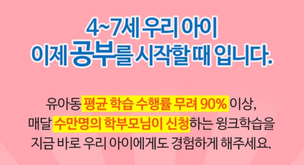 강남 엄마들이 인정하는 예비초등 5세 영어 일일학습지 윙크학습 무료학습 이벤트