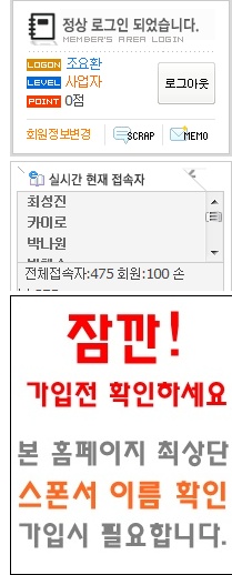전체접속자수가 475명 회원이 100명 손님 375명 엄청난 열기네요 ^^ 부업사이트에서 이렇게 많이 관심보이는건 또 처음이네요 ㅎ