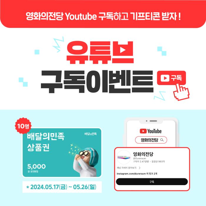 🌟 유튜브 구독하고 기프티콘 받아가자!