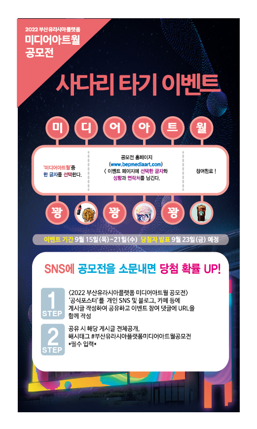 [이벤트] 2022 부산유라시아플랫폼 미디어아트월 공모전 사다리타기 이벤트 (~9/21)