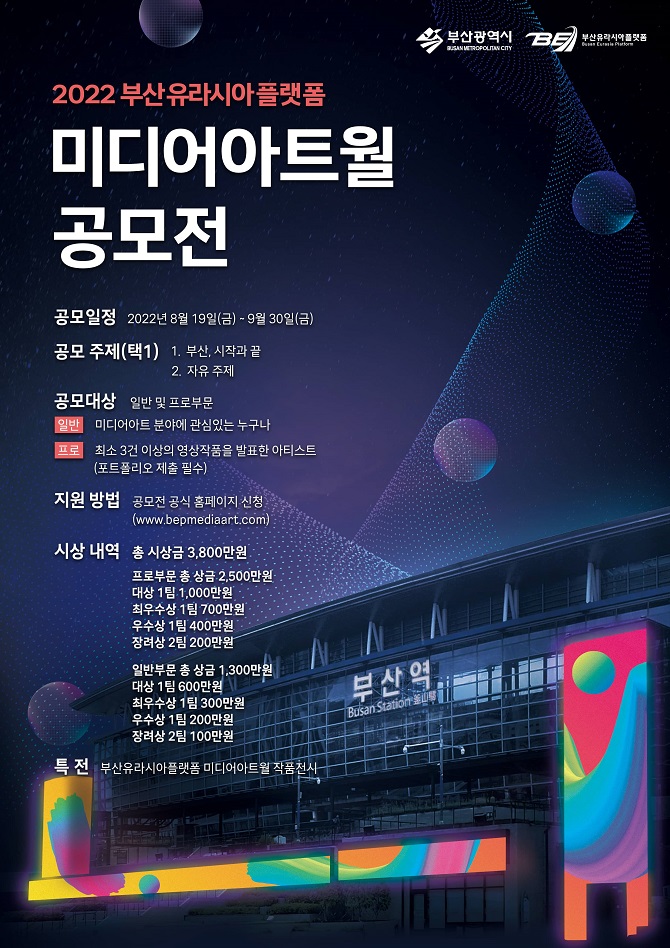 안녕하세요. [2022 부산유라시아플랫폼 미디어아트월 공모전] 운영사무국입니다.