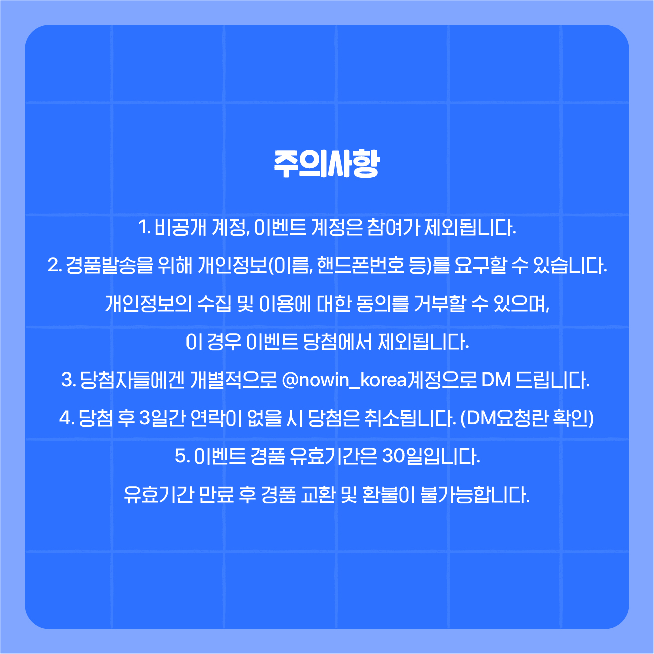 ✔️ 당첨 후 3일간 연락이 없을 시 당첨은 취소됩니다. (DM요청란 확인)
