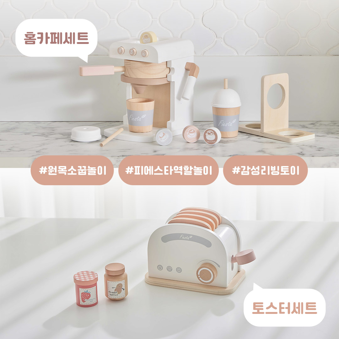 [체험단모집]피에스타 원목 소꿉놀이 홈카페 세트 & 토스터 세트