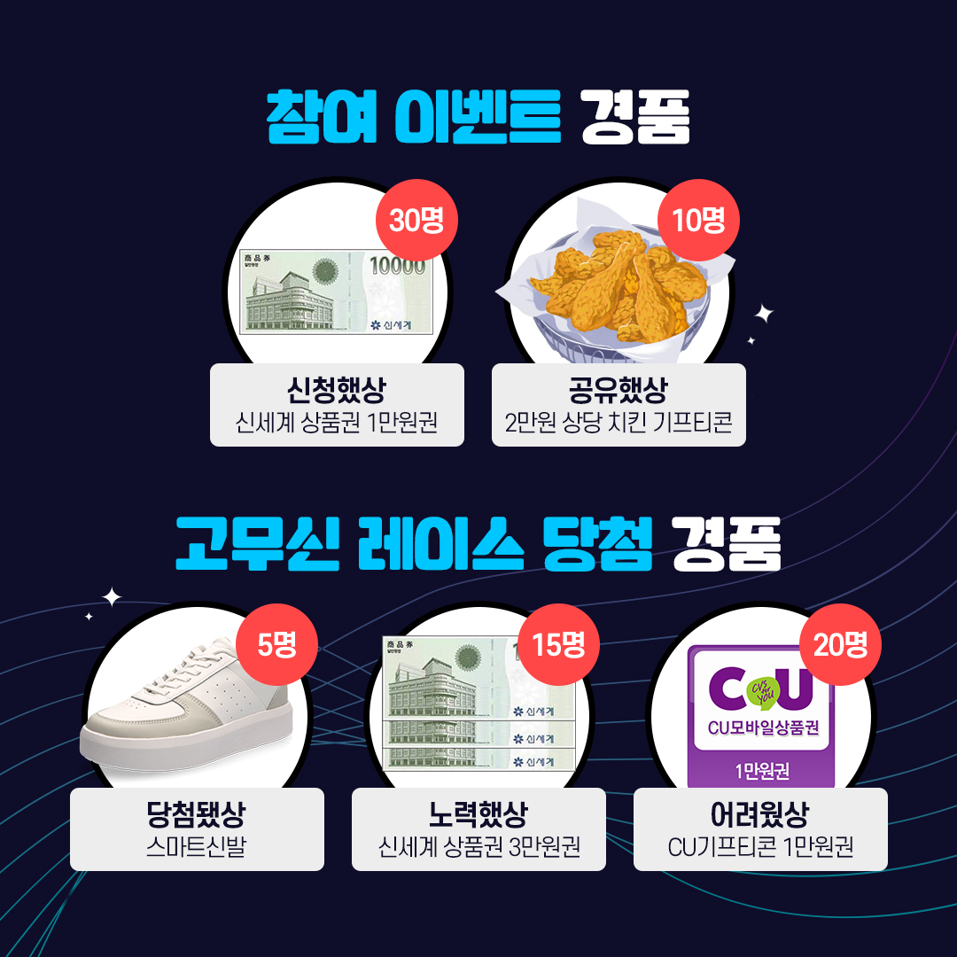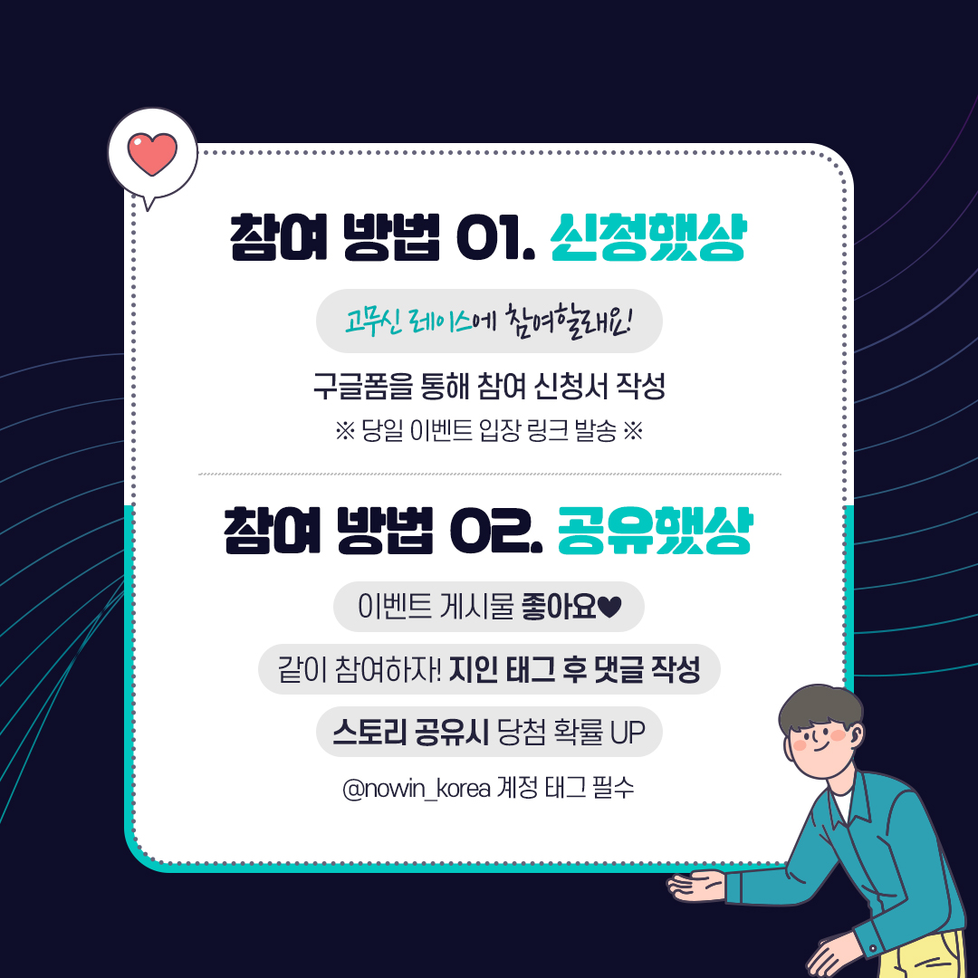 ✔구글폼(신청서) 제출자에 한해서 고무신레이스 이벤트 참여링크 문자발송드립니다.