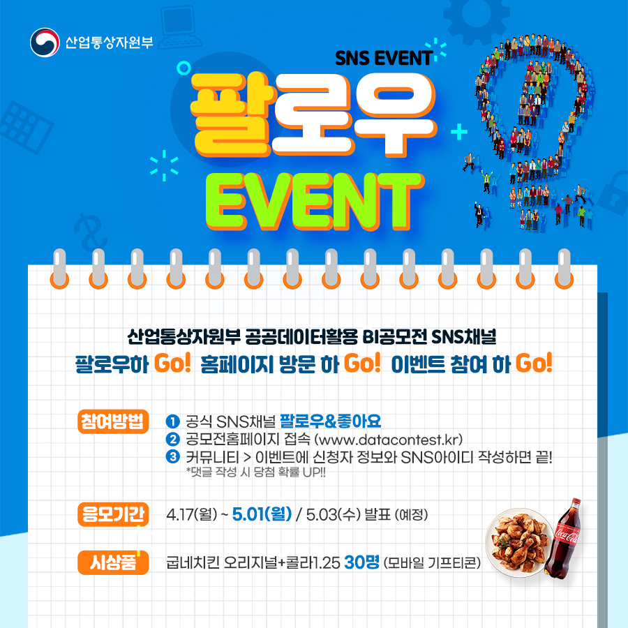 1. 산업통상자원부 공공데이터 활용 비즈니스 아이디어 공모전 SNS(인스타그램, 페이스북)팔로우 하기
