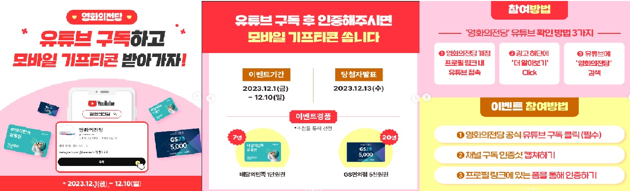 🙌 유튜브 구독하고 모바일 기프티콘 받아가자!