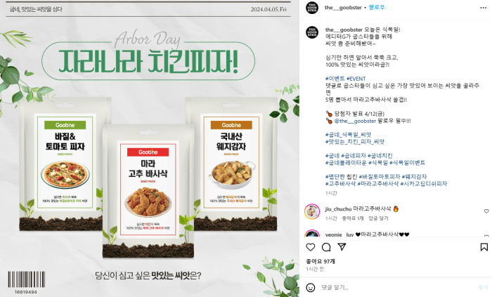 #이벤트 #EVENT 가장 먹고 싶은 맛있는 씨앗을 고르면 5명에게 마라고추바사삭 증정! ⠀ 📝 당첨자 발표 4/12(금) 📝 @the___goobster 팔로우 필수!!!