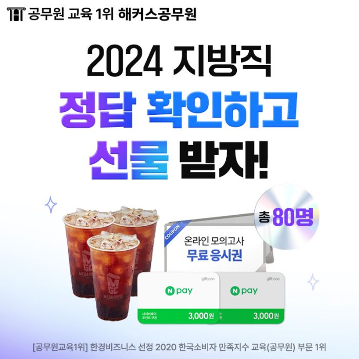 [해커스공무원] 2024 지방직·서울시 9급 가답안/정답 확인하고 간식 받자!