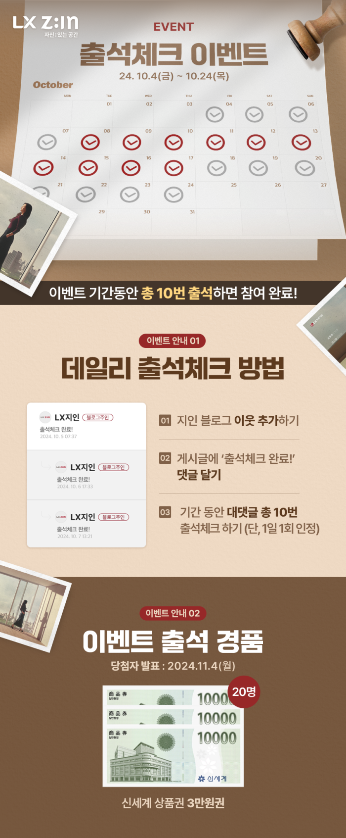 LX지인 새로운 CF ON-AIR 기념 데일리 출석체크 이벤트!